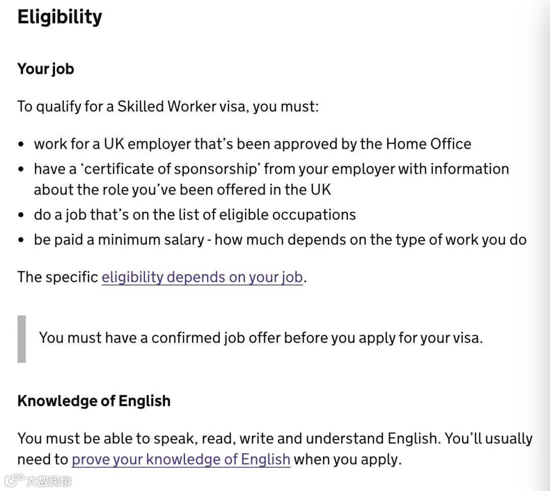 · 为英国雇主工作,该雇主需要获批移民局颁发的雇主担保资质(Sponsor License);