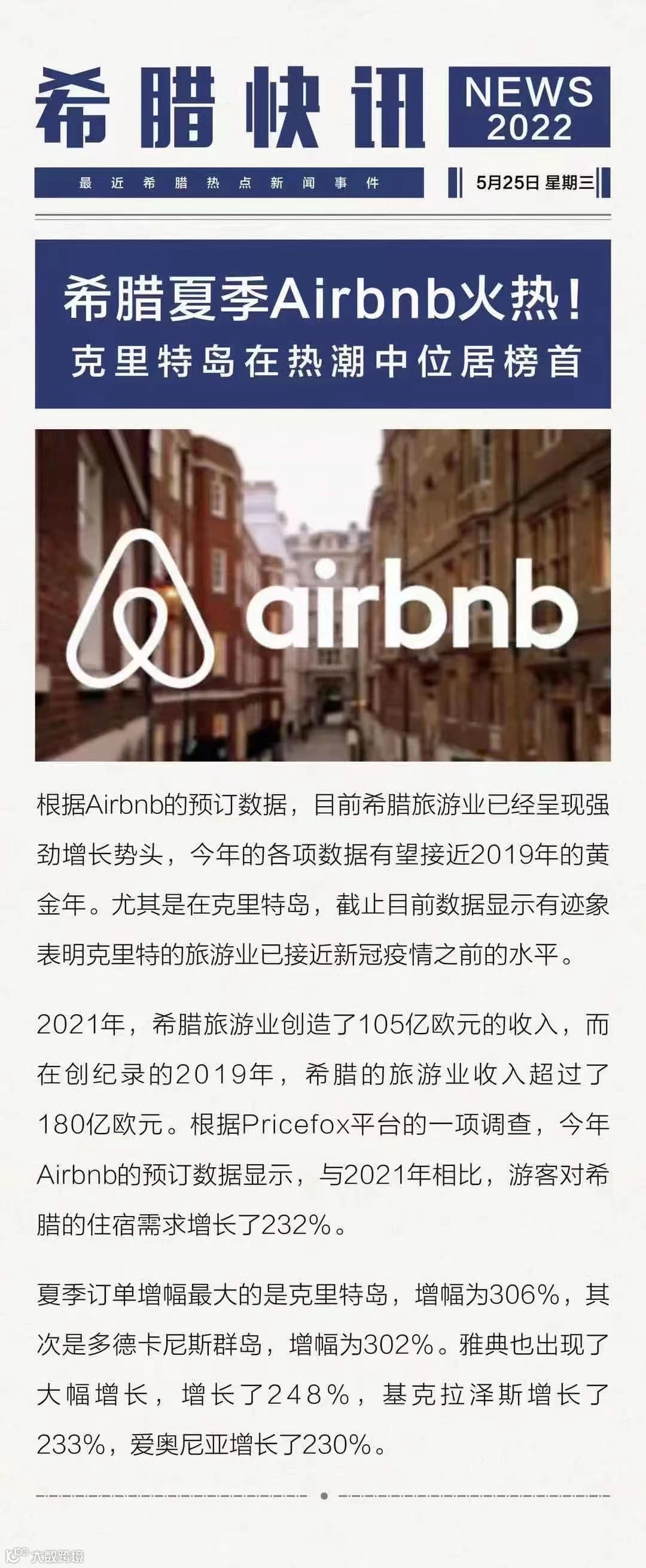希腊快讯:Airbnb雅典的夏季订单增幅高达248%