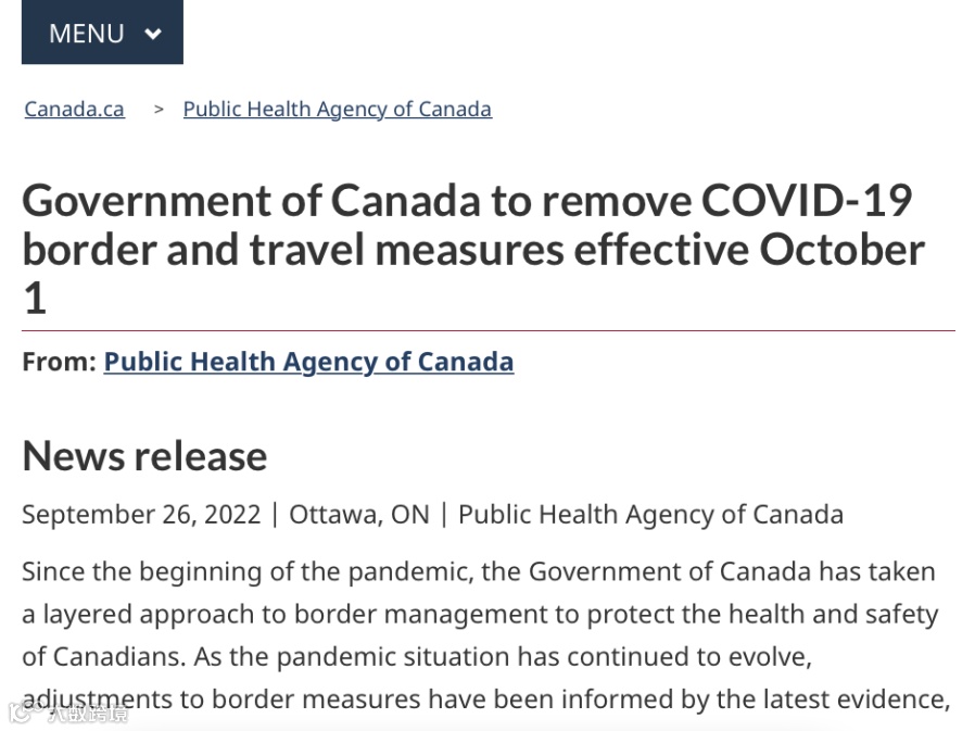 日前,加拿大联邦政府正式宣布:从10月1日开始取消所有新冠边境限制,包括疫苗接种证明、检疫隔离要求、抵达后新冠测试等等!除此外,加拿大还将取消强制性ArriveCAN申报要求,旅客们可以根据自己的情况选择性申报,飞机火车强制口罩令也被取消。