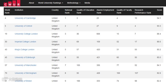 在今年的排名中,哈佛大学连续第十年在该排名中蝉联冠军。麻省理工大学和斯坦福大学则和去年一样,分别位列第二和第三。其余进入前十名的学校依次为英国剑桥大学、英国牛津大学、美国普林斯顿大学、美国哥伦比亚大学、美国芝加哥大学、美国宾夕法尼亚大学以及美国耶鲁大学。