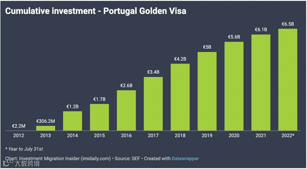 从2012年10月8日颁布法令开始,葡萄牙黄金签证项目的总投资额已经达到6.46亿欧元。从2013 年开始有大批投资人开始投资,葡萄牙黄金签证的投资额平均每天是167万欧元,马上将迎来第10年了。