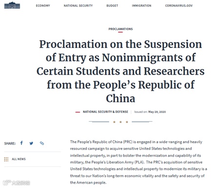 美国新一轮行政限制令已官网公布,并于2020年6月1日正式生效。