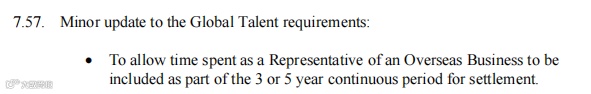 允许作为海外业务代表所花费的时间被包括在3年或5年的连续结算期内。