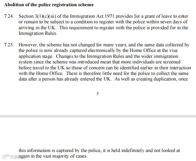 本次修正案中提到,由于该计划多年来一直没有改变,警方收集的相同数据现在已经被内政部在签证申请阶段以电子方式获得,所以为了减少警察和内政部的成本和行政负担将正式废除赴英外国人警察局登记制度,而警方可通过其他方式访问内政部数据。