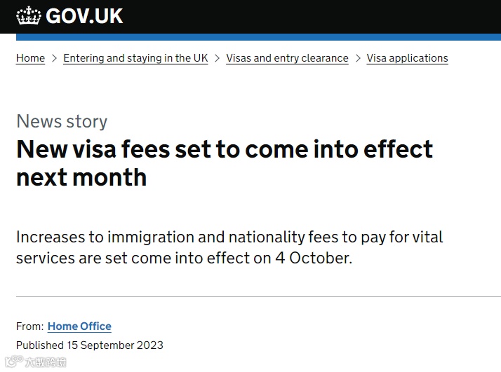 英国内政部在官网宣布了自2023年10月4日起,在英国境内/境外的签证申请、入籍申请以及加急服务等一系列签证相关服务费用将正式上涨,具体涨价费用因签证不同而涨幅不同,下面我们来重点看下创新创始人、工签等签证的具体情况吧。