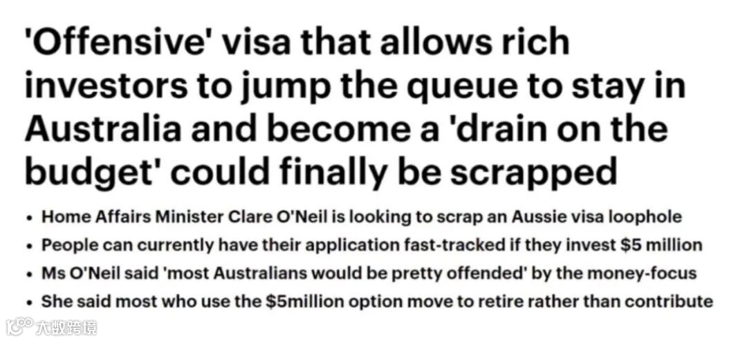 这次的信号并非空穴来风,真实性十足。每日邮报9月11日报道称,联邦政府将对澳洲移民系统进行全面审查,针对海外富人的投资移民签证可能会被废除。SIV签证于2012年推出,至今正好十年的时间,在这十年内为数千的家庭获得了澳洲的身份,但是随着该签证的延续,政府也发现了新的问题。这个签证的申请者基本都是已经退休的富人,都是为了子女的教育或者养老而选择澳洲,她们在澳洲缴纳税费的数量很少。说白了,政府让这些人轻松的获得了澳洲的身份,但是这些申请者却并没有为澳洲带来足够的收益。在该签证持有期间也不断的传出反对的声音。