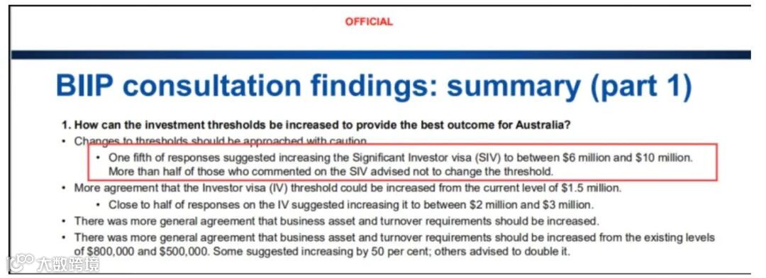 虽然在2020年新财年开始之初澳洲政府调查问卷中针对SIV签证要求申请人的投资额提高至600到1000万澳币,但是最终并没有实现,而是将风投企业的投资金额提高至100万澳币。