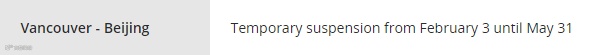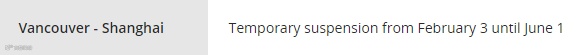 6月1日恢复航班包括:温哥华往返北京和温哥华往返上海!