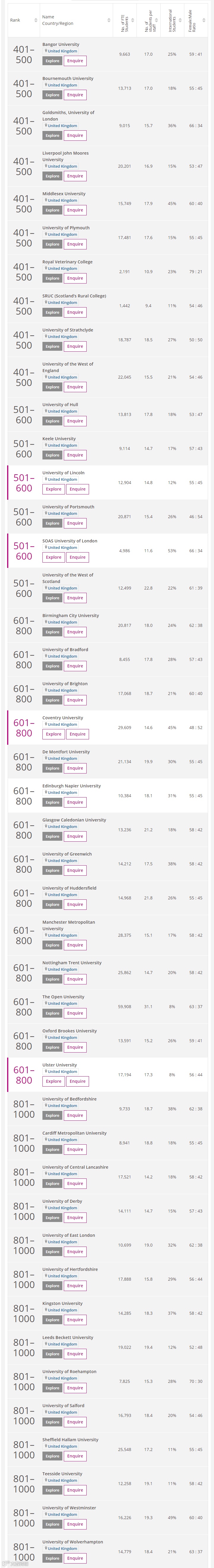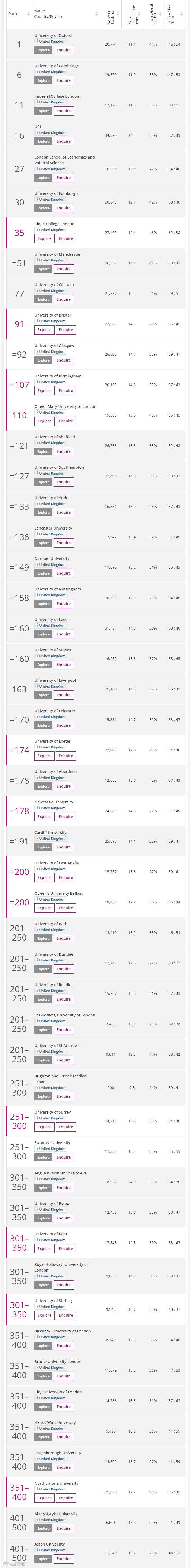 具体来看进入2021年泰晤士高等教育世界大学排名前1000名的英国大学名单。