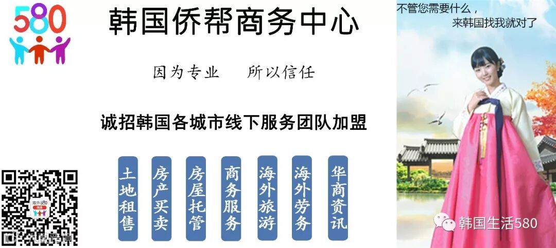 韩国580--是韩国影响力最大的便民平台,为在韩华人提供投资,经商,旅游,招聘求组,房屋租售,吃喝玩乐等综合服务信息。并且在韩国拥有线下实体服务团队,我们专业和效率将使您在韩国生活和投资更加美好!