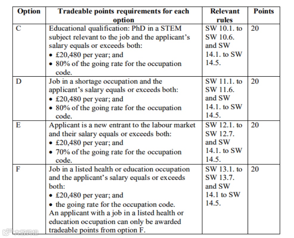 3. 在满足其他要求(包括具有与工作相关的博士学位)的前提下,工资的条件可换成:具有与该工作相关的STEM学科的博士学位资格;从事短缺工作的工作;或从事在列出的健康或教育职业工作;