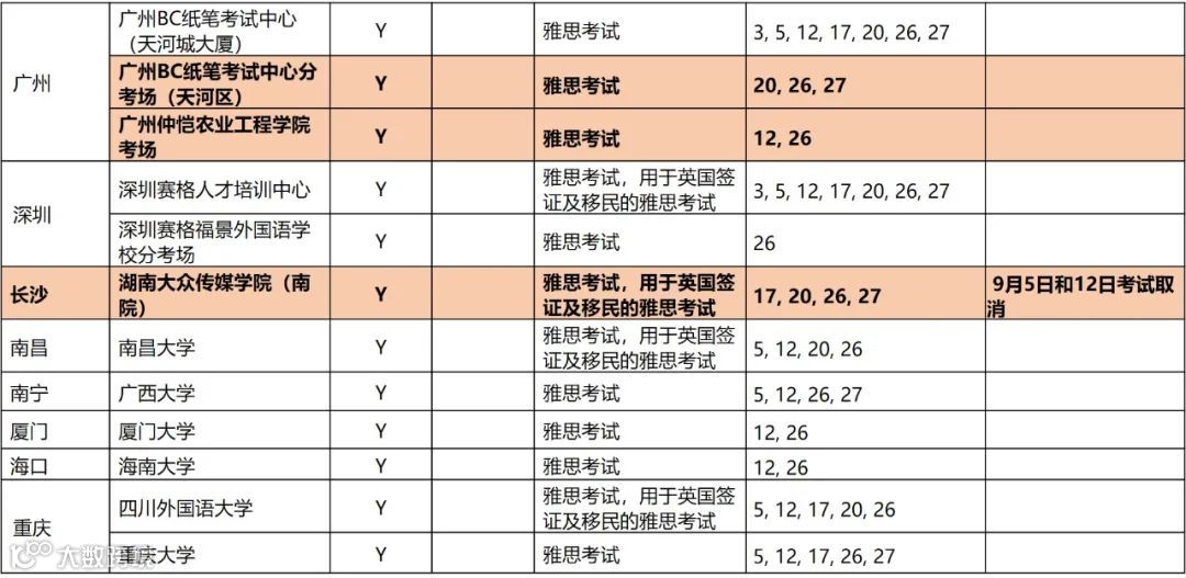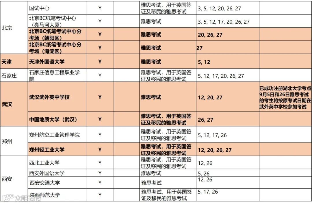 - 中国地质大学(武汉)考点新增9月26日用于英国签证及移民的雅思(IELTS for UKVI)纸笔考试和9月27日雅思纸笔考试