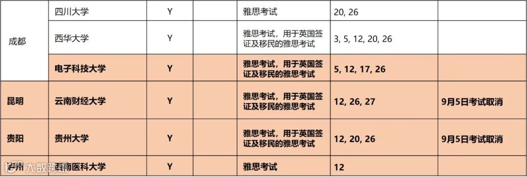 - 电子科技大学考点新增9月12日,17日和26日用于英国签证及移民的雅思(IELTS for UKVI)纸笔考试