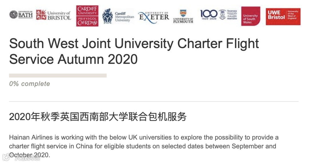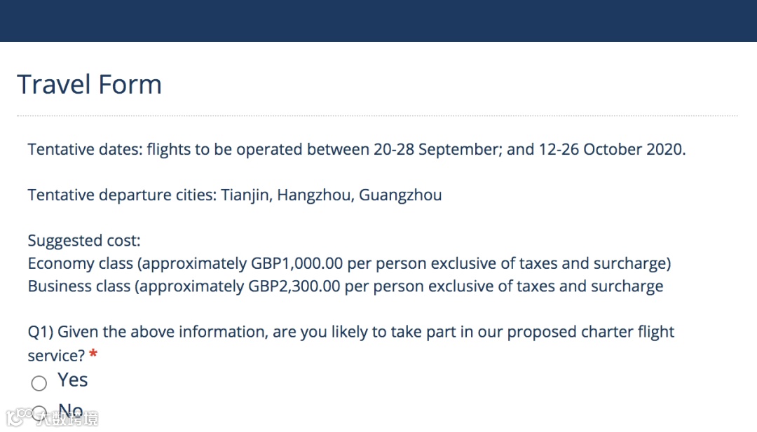 有意使用包机服务的同学需要在英国时间2020年8月5日23:59(北京时间8月6日06:59)前完成调查问卷。