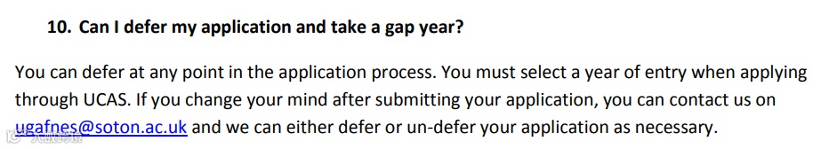 南安普顿大学部分课程允许延期入学,通过邮件与学校联系。