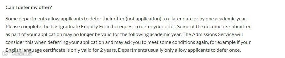 利兹大学的大部分专业都允许defer,uncon-offer和只con语言的offer都可以申请延期入学,但只允许defer一年。