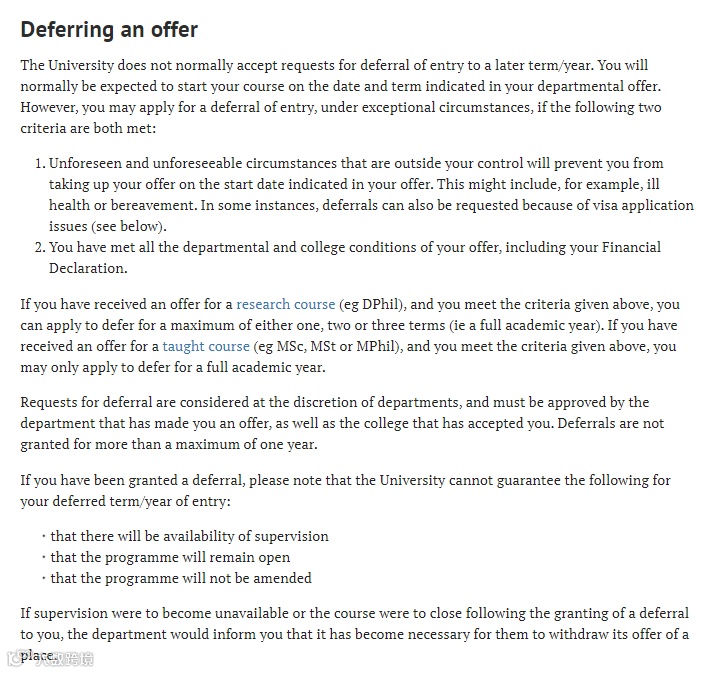 牛津大学一般不接受延期入学申请,除了特殊原因(如重大疾病),而且defer前学生需要满足学校官方的要求。