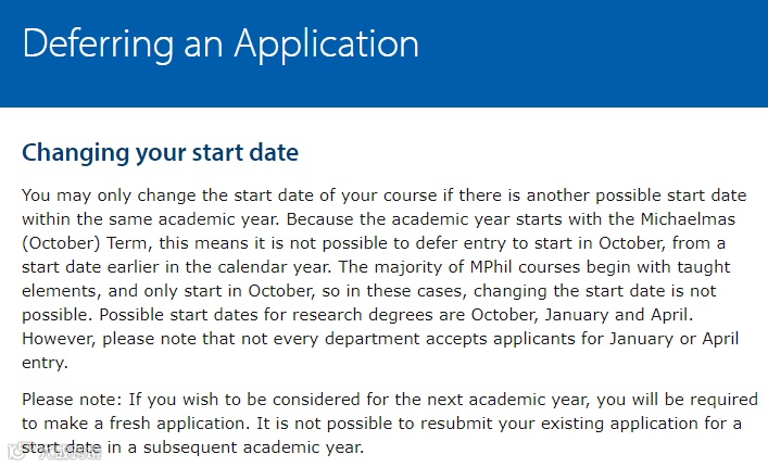 剑桥大学一般不接受延期一年入学的要求,只允许学生延期到同一学年的不同开学时间。