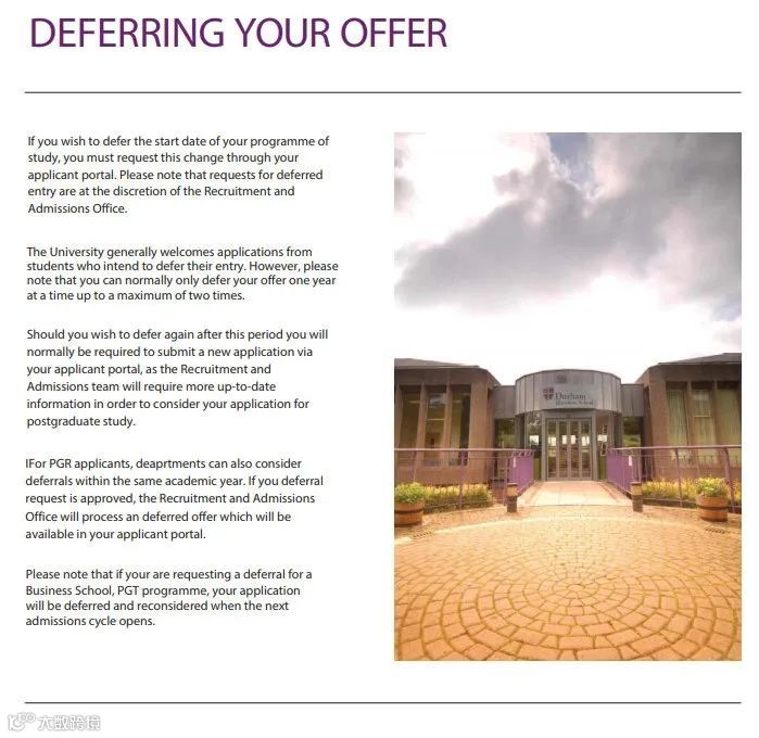 杜伦大学的延期入学都是case by case的,以各自学院审核为准,最多允许提交2次且延期一年。