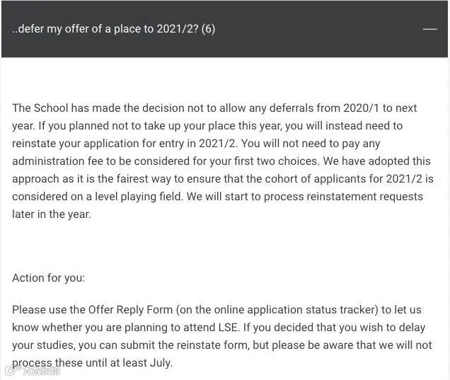 而你申请的学校在这段特殊时期并没有任何利好政策,甚至连defer都不允许,要么如期就读,要么明年重新申请。
