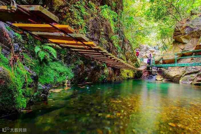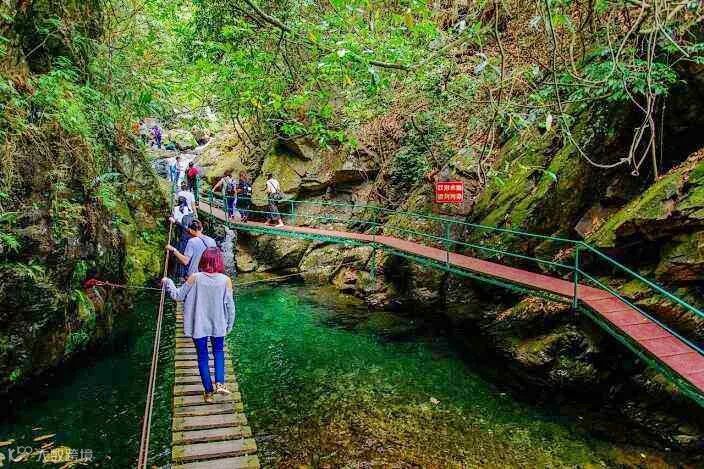 沿途两岸青山相夹,泉水清澈见底,溪流潺潺、水潭叠叠,山幽鸟鸣、百鸟飞舞、奇瀑飞泻如银河飘雪。