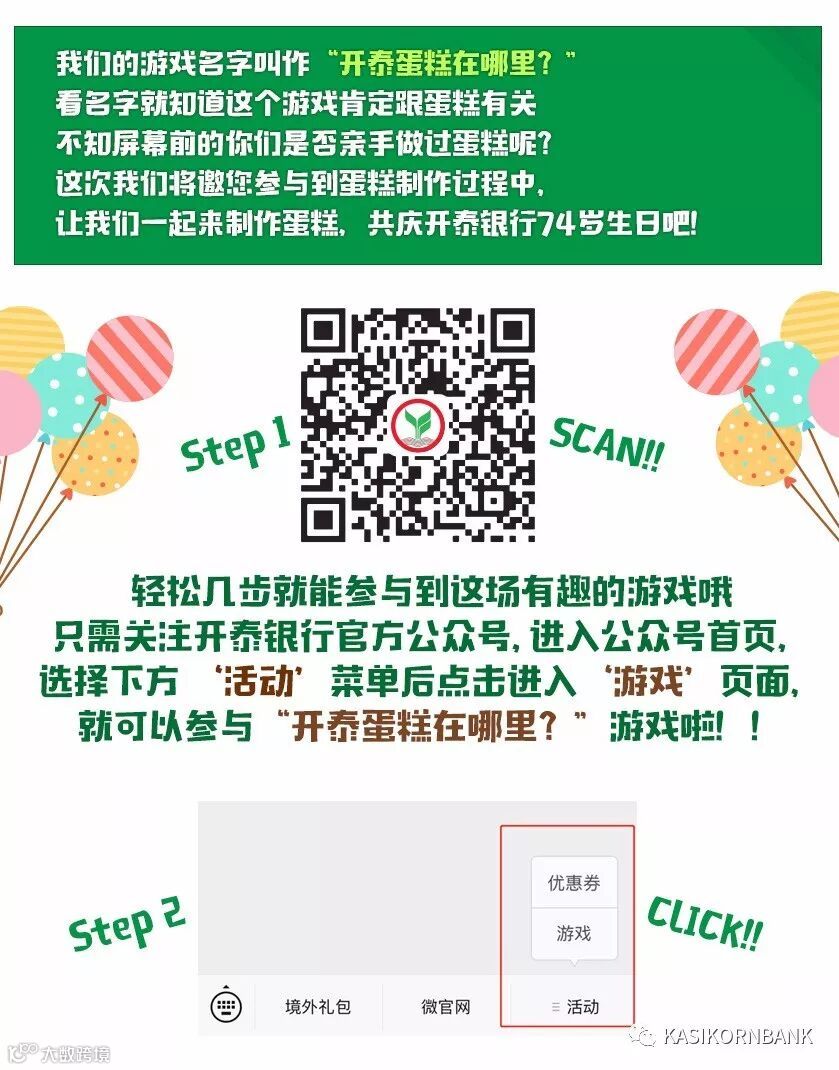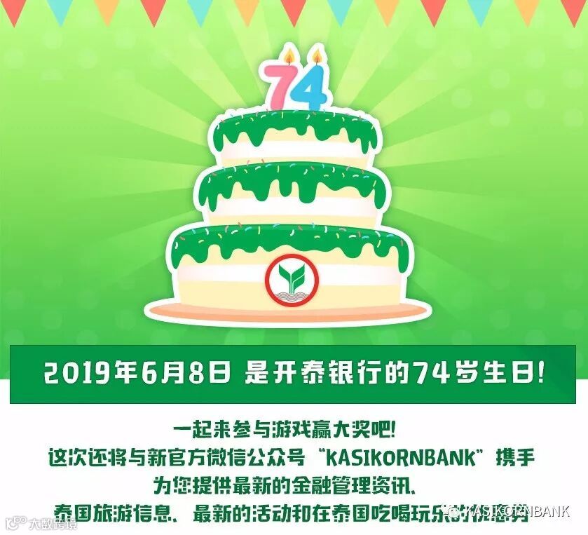 导读:开泰银行74周年行庆介绍全新官方微信公众号!邀您参与游戏,一起赢大奖!