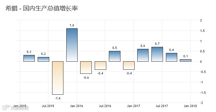 在2017年第三季度,希腊经济在上一季度上涨0.4%后环比上涨0.1%。这是自从2016年第三季度经济萎缩0.4%以来的最低增幅,但从2017年起,希腊国内生产总值还将持续稳步提升。