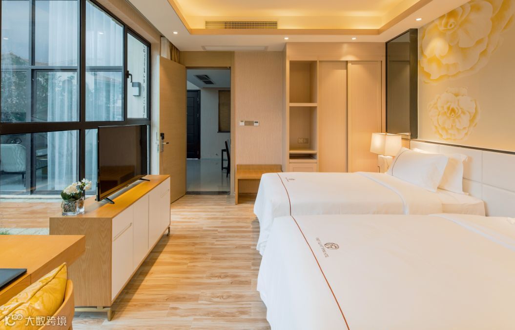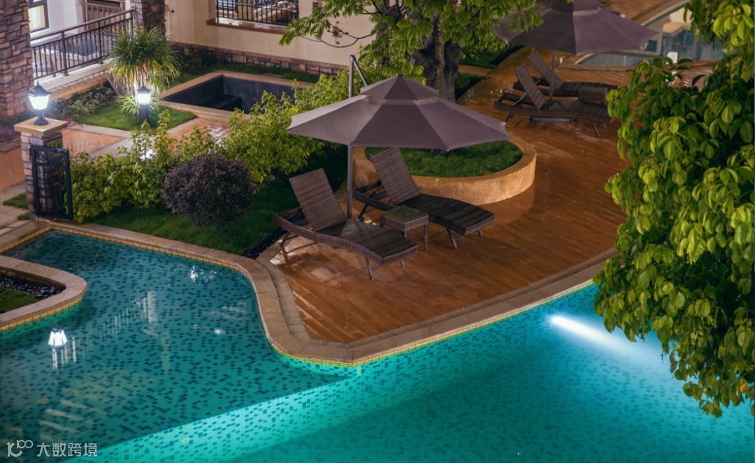 400米亲水泳道,推开房门dum一声即跳落泳池