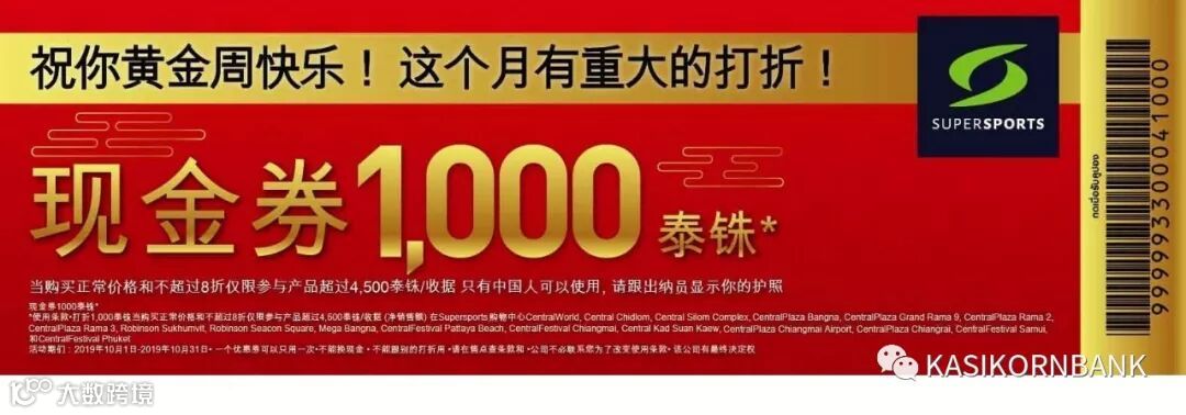 2. 活动内容:打折300/1,000/2,000泰铢 当购买正常价格和不超过 8折,请跟出纳员显示你的护照。