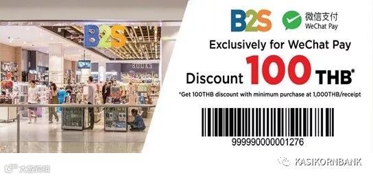 微信用户消费满1000泰铢且用微信付款,即可优惠100泰铢