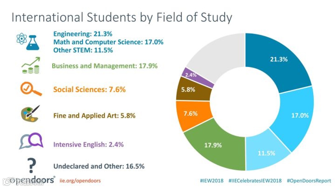 教育协会IIE2018年发布了《美国开放门户报告》(Open Doors)。