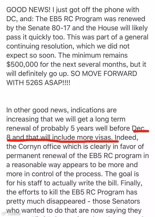 也就是说,EB-5已经完全确定,再再再次延期到了2017年12月8日。