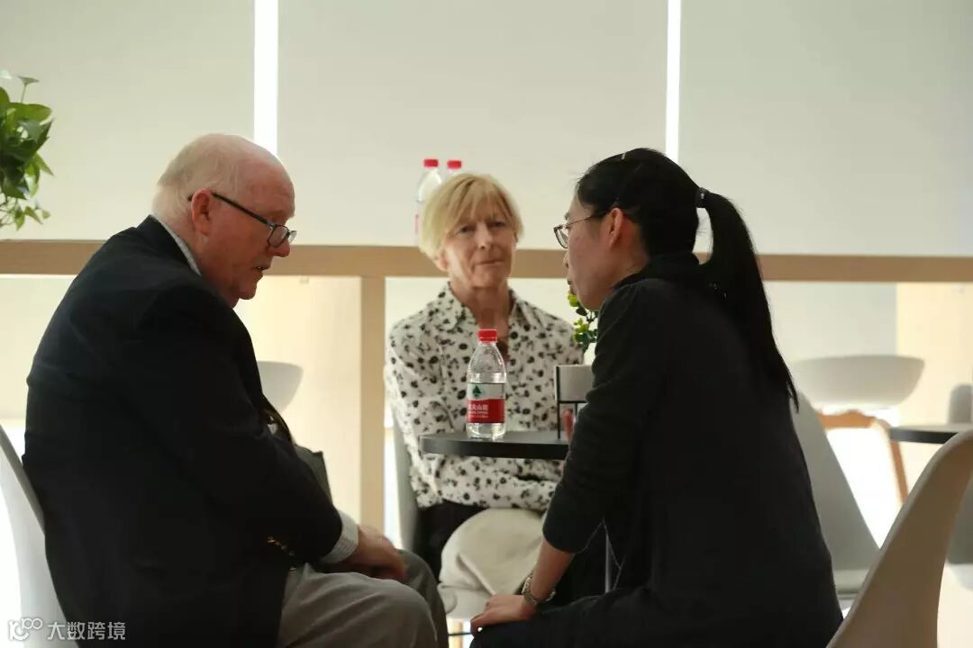 慧科国际负责人高琳为FIU领导一行介绍两位身怀六甲却仍然坚持在招生一线的王老师(左一)、段老师(左二)当得知两位招生官曾打趣说她们的孩子出生后“一个叫报名,一个叫复试”时,国际关系学院院长约翰·斯泰克乐得哈哈大笑