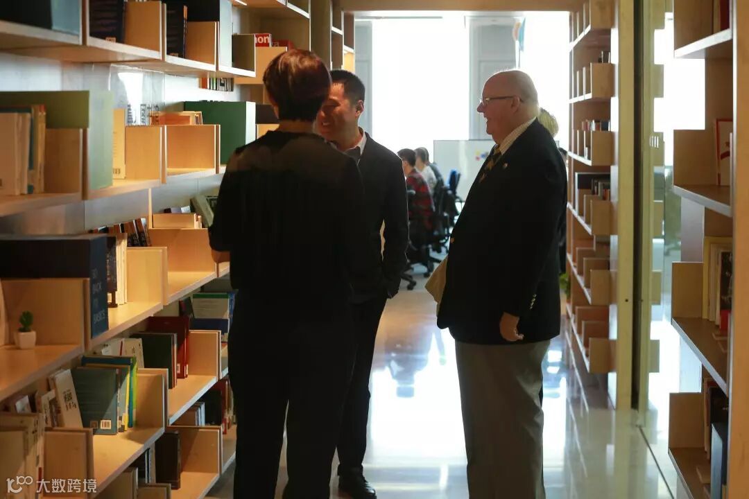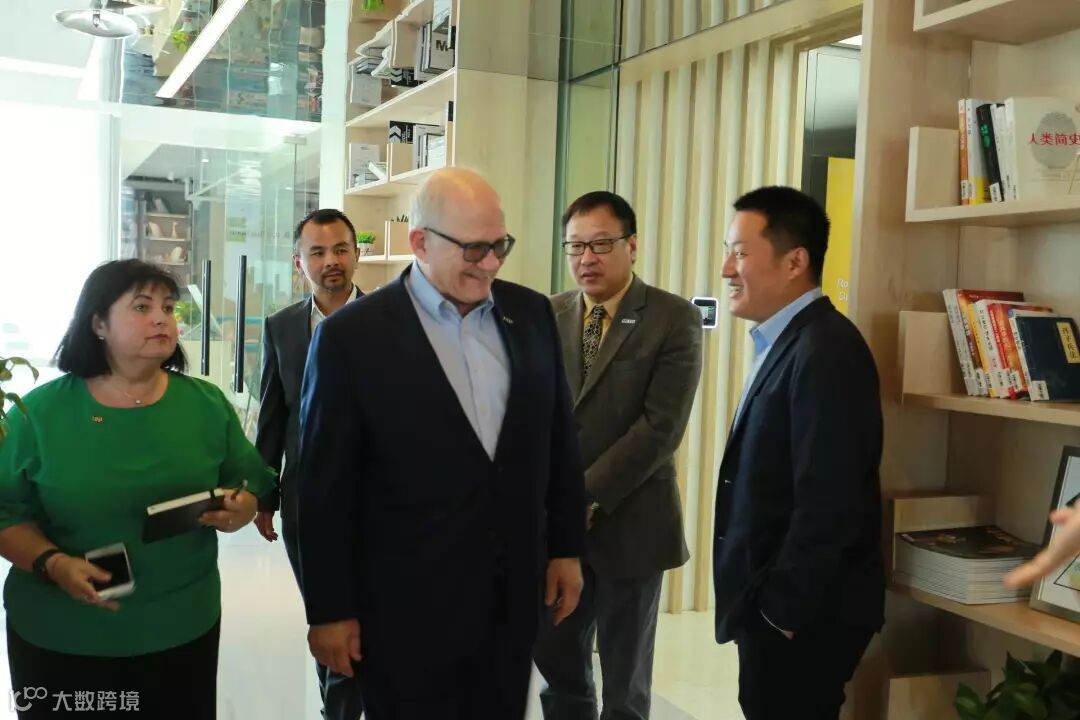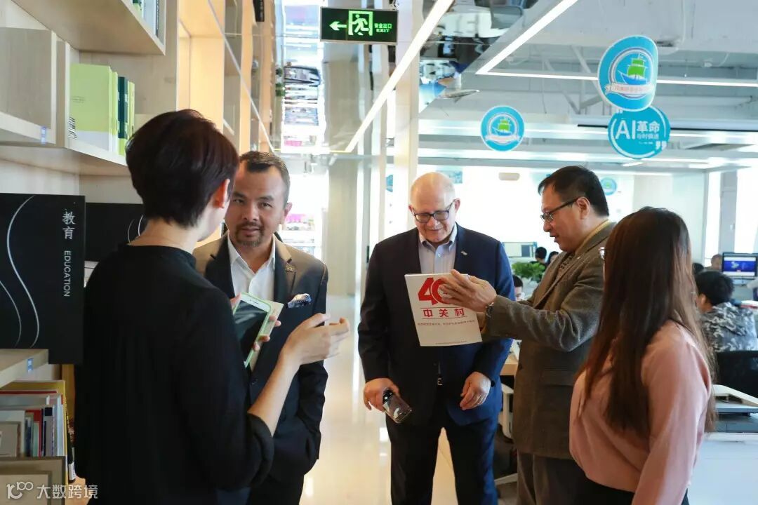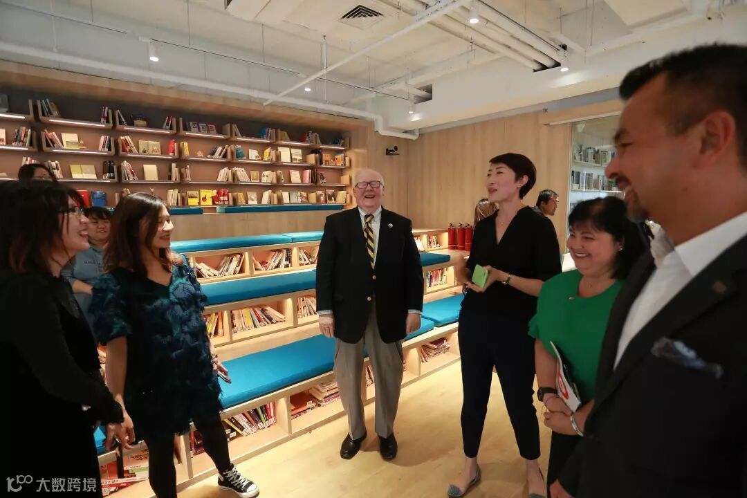慧科集团CEO岳喜伟、慧科国际负责人高琳为FIU校长马克·罗森伯格、校长办公室副主任达尼亚·皮尔森、副教务长卢鹏、酒店管理学院院长迈克尔·成介绍真北图书馆,并展示“全方位关注中国及世界知识经济前沿最新发展,报道海淀、中关村的经济、科技、文化”的《中关村》杂志2018年8月刊,当期封面人物为慧科集团创始人、董事长、FIU校友方业昌博士,9年前他从FIU学成归国后与CEO岳喜伟共同创立了慧科集团