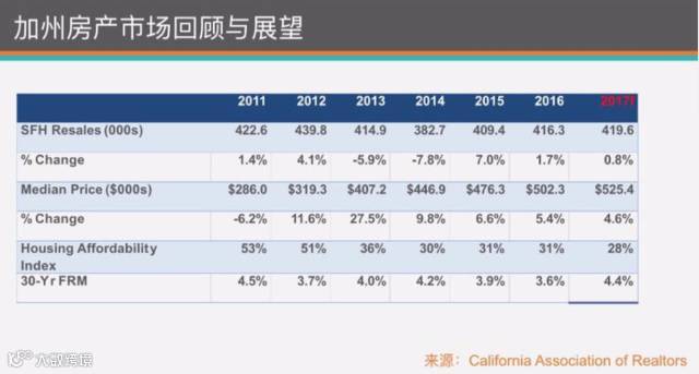 从各项数据来看,今年美国房产市场还是处于一个温和上扬的区间。我们通常从非农就业指标,失业率,人口增长幅度,居民可支配收入这些数据中判断房产走势。特朗普承诺会把更多的工作机会带回美国,近期的就业数据应该不会太差。例如,加州人口净增长每年在1%左右,房产每年有5%左右的增值,租金回报率在4%左右。加州地产经纪人协会提供的过去几年的数据,基本上也符合这个走势。目前加州独栋别墅房价的中位数在52万5千美元左右,新移民比较关注的学区房一般会比中位数房价高一些。
