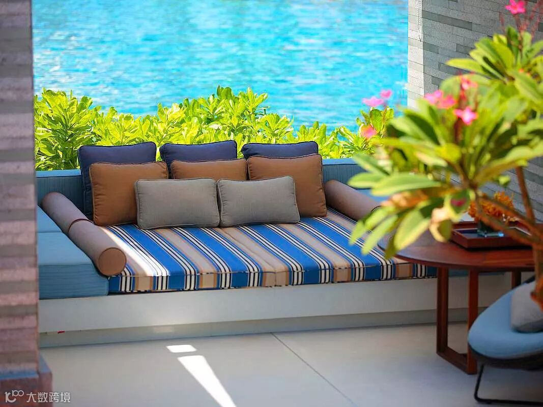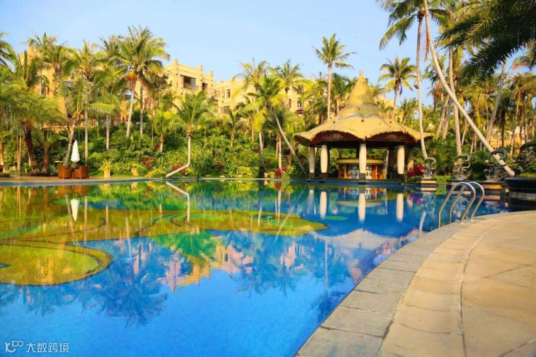 三亚半山半岛洲际度假酒店苍山环抱,碧水白沙,绿树成荫。
