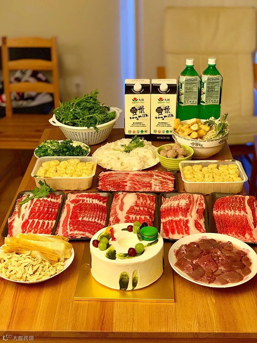 拍照要点:食材摆放顺序为蛋糕、肉、菜和饮品。