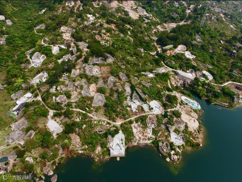 福清市龙田镇南山村海边的山上分布着众多已建成和在建的坟墓。