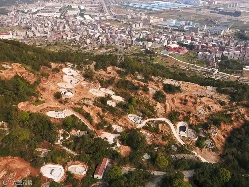 临近山顶,道路两侧坟墓逐渐增多。记者来到海拔300多米的山顶区域发现,100多座新建坟墓密密麻麻覆盖了整片山体,其中不少是占地100平方米以上的活人大墓,原本树木葱郁的秀美山脉满目疮痍。