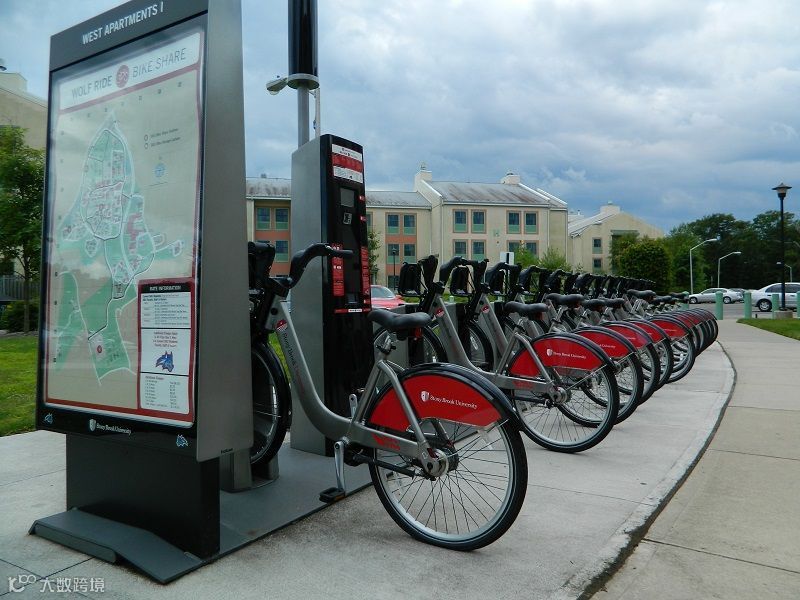 石溪大学为学生的交通提供了无限的便利,校内也有免费的共享自行车,也就是我们常说的wolfie bike。校内大概有二十个共享单车站点,所以想买自行车的同学们,了解到这个信息之后,你可能就不会再有那个念头了。骑行需要刷学生ID,但是千万不要随意停放,若是超过一天未还车,那巨额罚单可是谁都吃不消的。