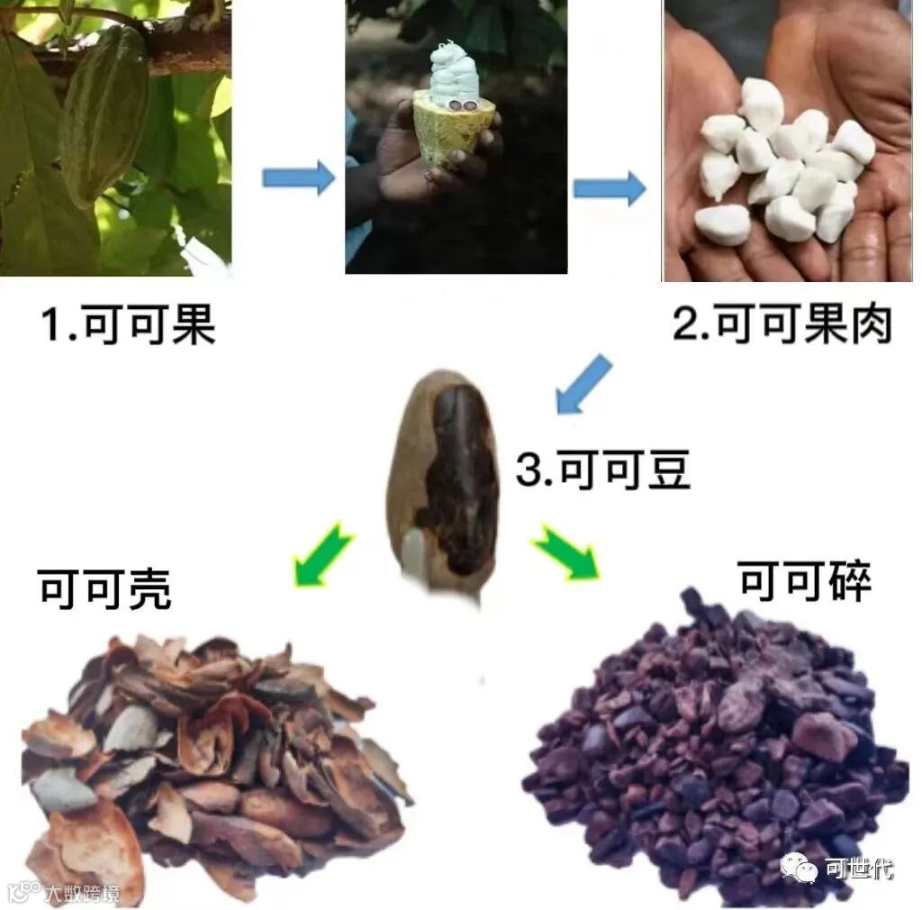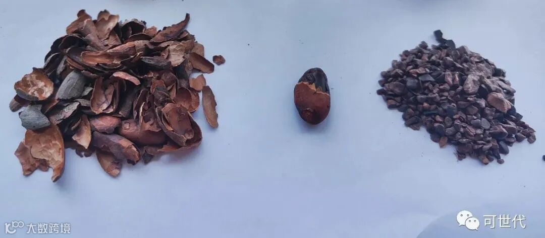 可可豆在破碎风选之后会分成可可壳与可可碎