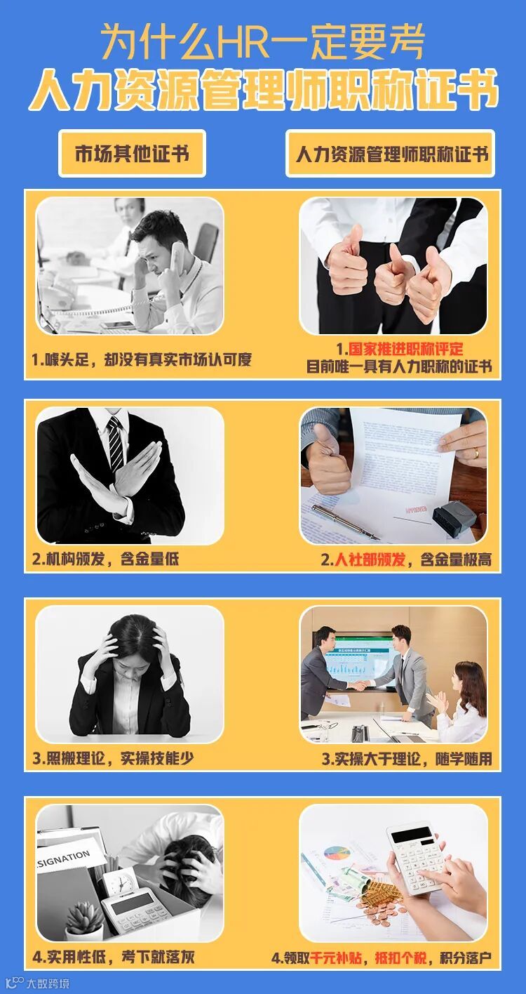 因为人力职称证书属于国家职业资格证书,考下后很多公司会给予一定的金额补贴!