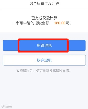 第五步,点击“申报退税”,或选择“放弃退税”,如果点击“申请退税”,系统会弹出特别提醒,阅读后点击“继续退税”;
