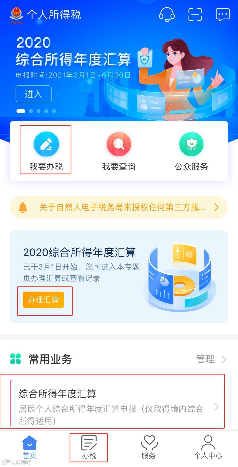 您可以登录个人所得税APP,点击首页的“2020综合所得年度汇算”中“办理汇算”分六步完成。