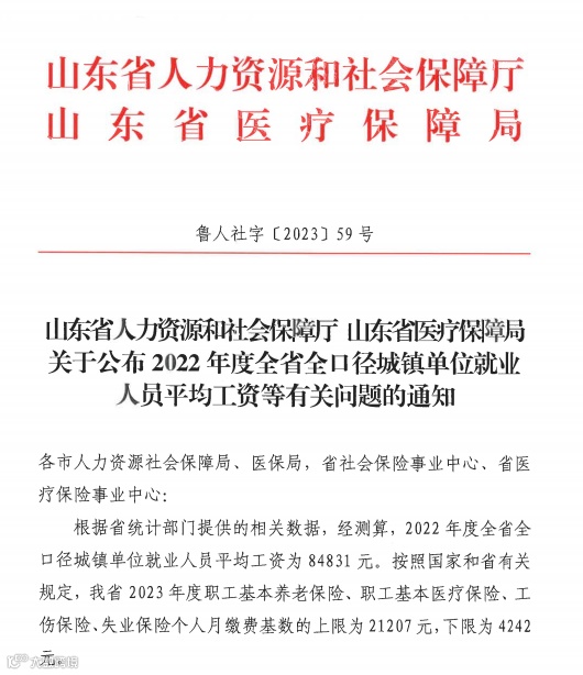 根据山东省医疗保障局《进一步规范基本医疗保险参保缴费与待遇支付有关问题的通知》文件规定,每年省人社厅会同省医保局下发全省全口径城镇单位就业人员平均工资(以下简称平均工资)公告后,各统筹地区自公告之日的次月起,统一按公告的平均工资调整基本医疗保险缴费基数“封顶保底线”;公告之日的当月前(含公告当月)继续按上一年度公布的平均工资执行基本医疗保险缴费基数“封顶保底线”。