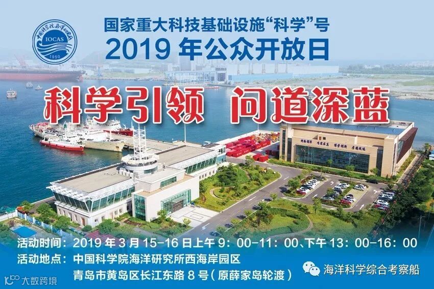 中国科学院海洋研究所将于3月15日、16日举办国家重大科技基础设施“科学”号海洋科学综合考察船2019年度公众开放活动。