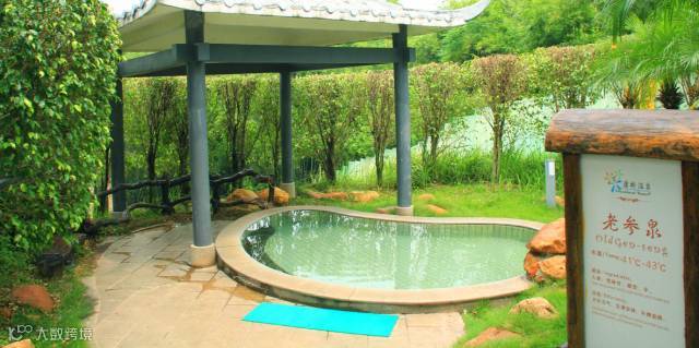 风格古朴、自然,每个温泉池对应配置一种名贵中药,有当归泉、杜仲泉等30多个中药温泉池,各具功效,让您在浸泡温泉的同时达到养生、美容的疗效。