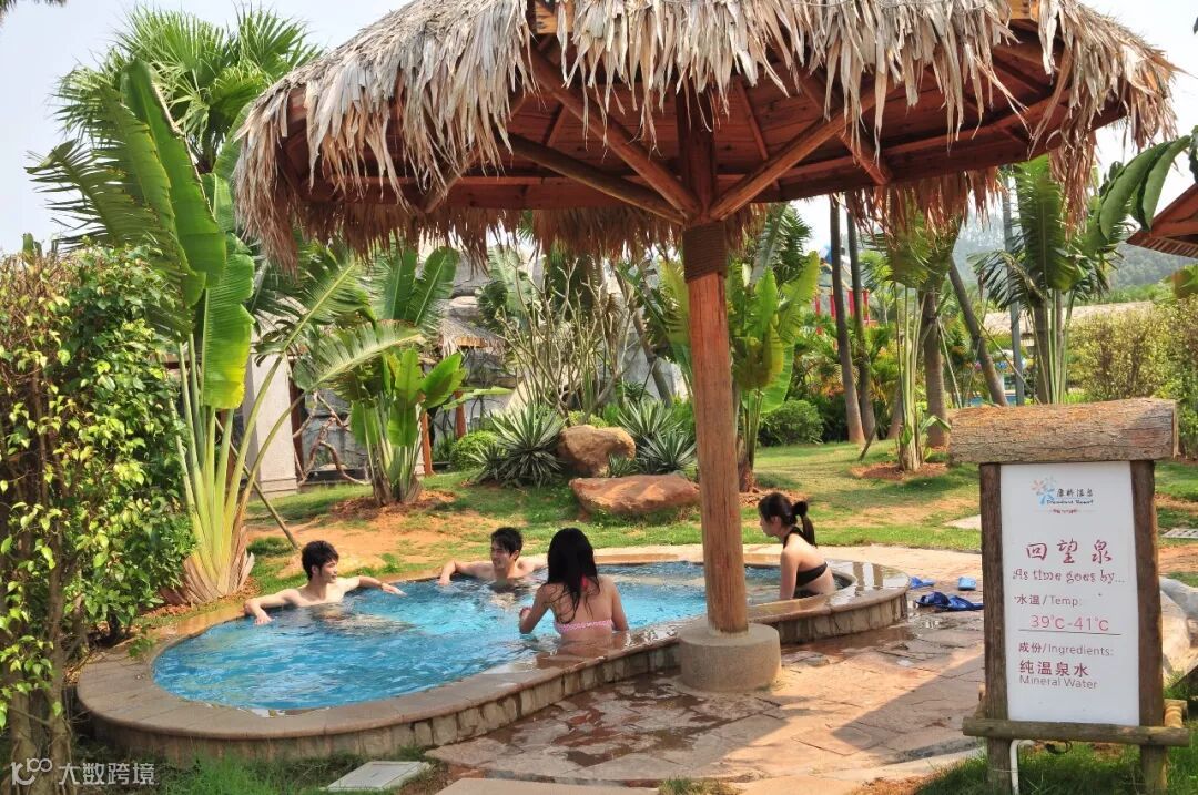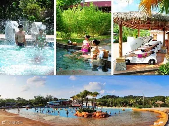 温泉区有100多个温泉池,依山而建,独享纯粹的大自然气息,水质晶莹剔透无异味,既有浪漫风情的情侣池,又有适合温馨嬉戏家庭乐的温泉池。