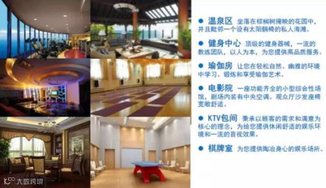 【叹】尊享酒店私家沙滩、无边际泳池、书吧、奥斯卡影厅、室内儿童乐园、健身房、瑜伽室。