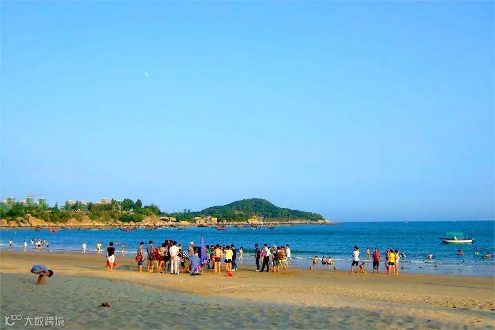 平阔、沙细白、水清碧、无淤泥、无污染、无骇浪、比美“夏威夷”。
